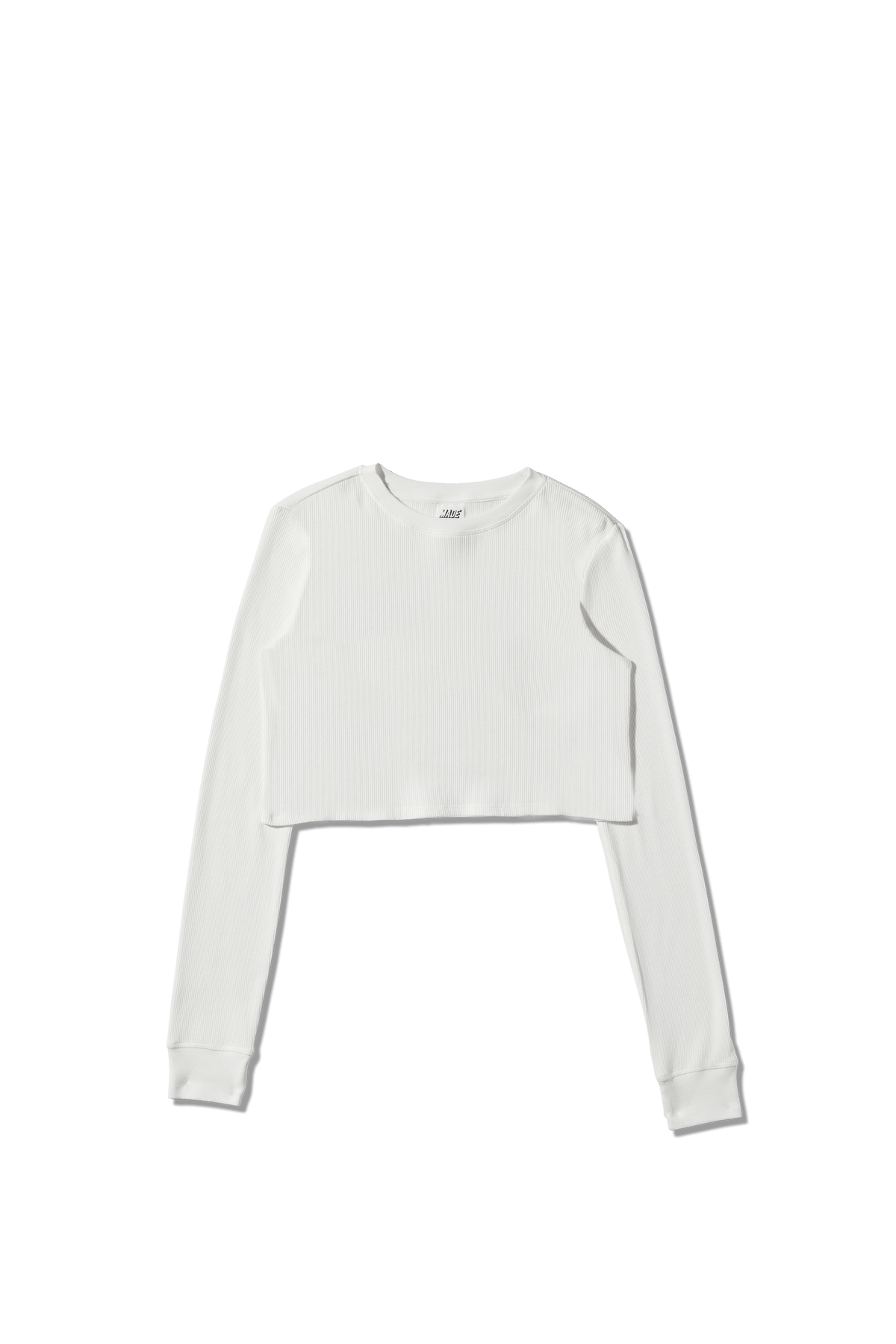 With our new waffle knit fabric, MADE’s Cropped Longsleeve Tee is the best in the game. Full of unique touches such as thumbholes on the cuffs and its raw edge hem, this crop top exceeds all expectations.
